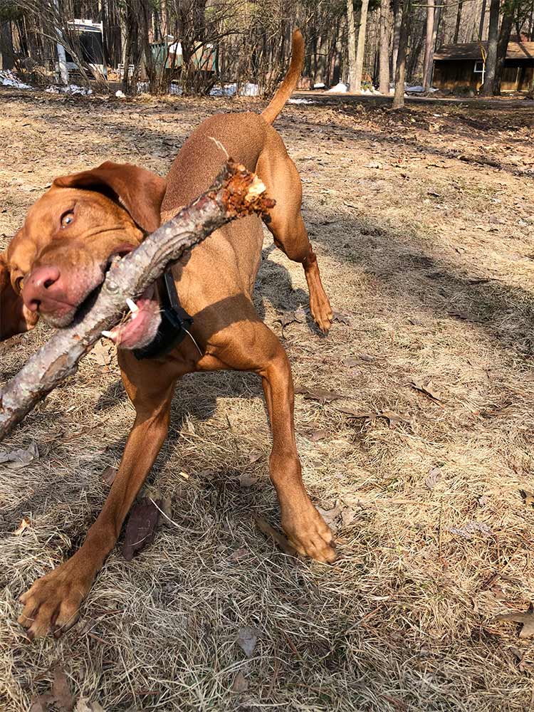 Coming from a family that spends considerable time in Northern Minnesota, our dog Josie has collected enough sticks to build a second cabin. Alongside each new stick found, there is a story to be told that brings a smile to the faces of all who hear it. While dogs’ adamant obsession with sticks may seem odd when considering the plethora of new dog toys on the market, sticks still stand tried and true as the first toy dogs ever interacted with, and as such continue to remain a staple play item for dogs worldwide. Similar to bones, sticks can be gnawed on endlessly and provide a texture, toughness, and aroma dogs can’t get enough of.  While dogs’ continuous fascination with sticks might be hard for us to fathom, there are considerable benefits this activity entails. Active chewing is common during the teething process as it provides relief to sore gums and reduces the overall discomfort experienced during this transition.  Chewing can also assist in cleaning dogs’ teeth and gums by scraping away plaque and tartar buildup.  Although discouraging your dog from picking up a stick may not always be an easy task, you must be careful and attentive!  A dog owner must always attentively watch their dog while engaged with a stick as a splintered piece can damage gums or become a choking hazard.