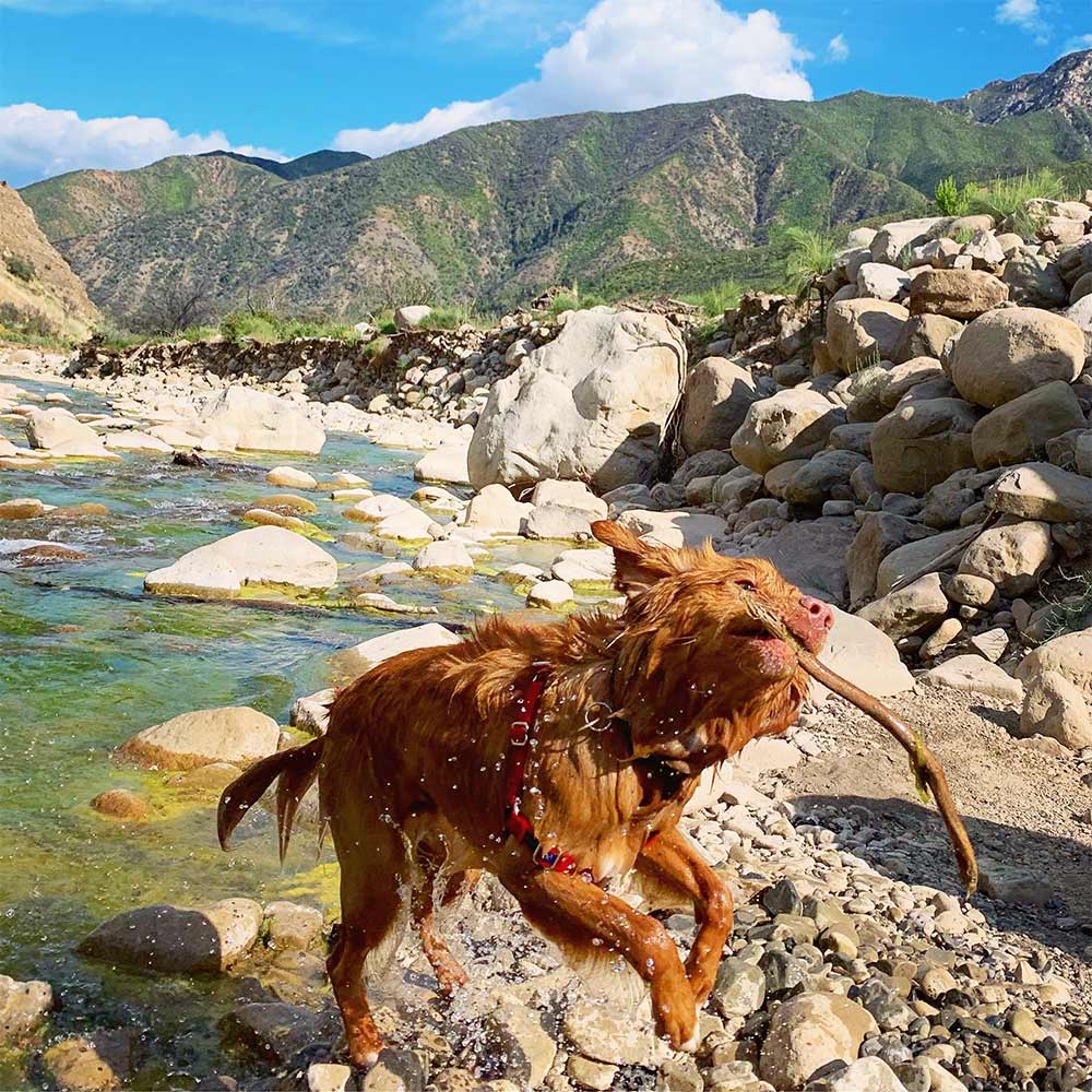dog with stick in mountain streamThe Stories Behind the Sticks